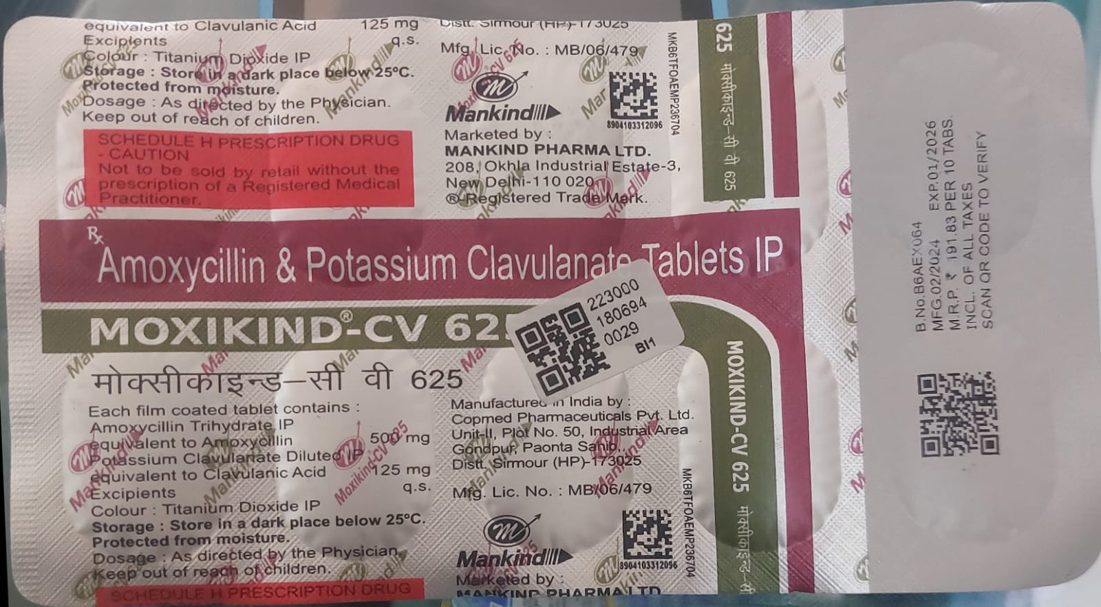 Amoxycillin (500 mg) & Potassium Clavulanate (125 mg) Tablets IP